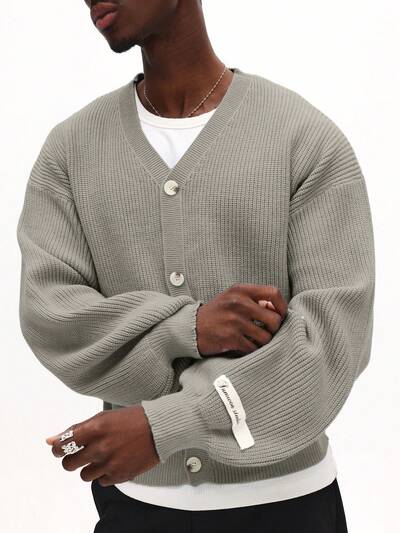 SUMWON Men's Relaxed Fit V-Neck Button Up Knitted Cardigan With Front Pockets Long Sleeve Casual Sweater
