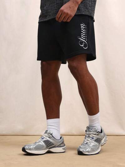 PLAYBOY X SUMWON Men's Black Pull On Nylon Shorts With White Contrast Trim And Side Pockets Summer Casual Elastic Waist Basketball Shorts