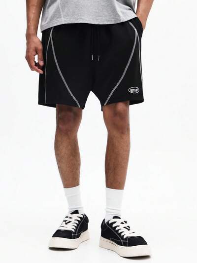 SUMWON Men's Black Drawstring Basketball Shorts With Contrast Stitching Details And Side Pockets For Summer Casual Wear, Sport Shorts For Men, Black Shorts Men, Track Shorts