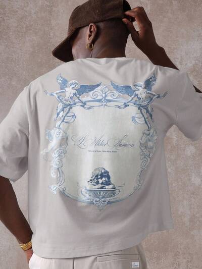 SUMWON Saudi Premium Cropped T-Shirt Streetwear Varsity Lettering Design Urban Fashion Athleisure Retro College Style Casual Contemporary Fashion Tee Summer Spring Clothing