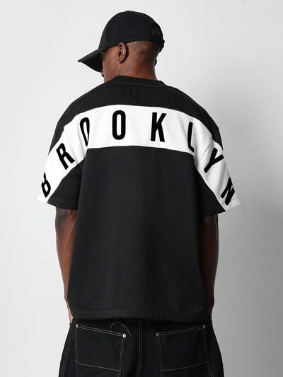SUMWON Streetwear Brooklyn Urban T-Shirt Oversized Graphic Back Print Varsity Style Letters Athletic Cut Casual Fashion Downtown Crew Neck Jersey