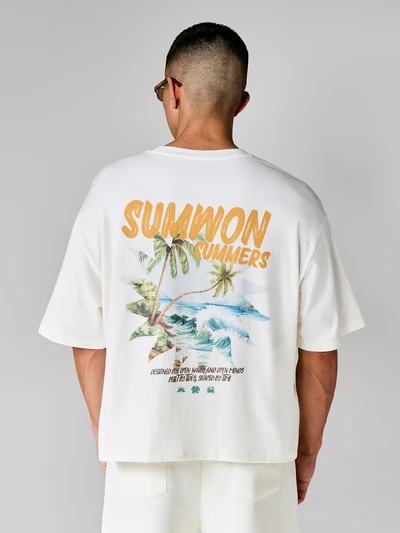 SUMWON Boxy Graphic Print Tee With Text Logo