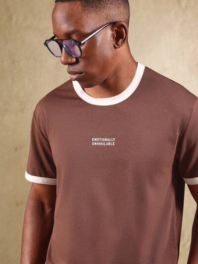 SUMWON Minimalist Ringer T Shirt With Emotionally Unavailable Statement Print Casual Urban Streetwear Graphic Top Essential Basic Lifestyle Message Tee Plain