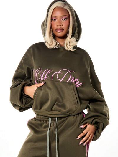 SUMWON Off Duty Script Print Oversized Hoodie Drawstring Centre Pocket Casual Streetwear Pullover Sweatshirt Winter Fall