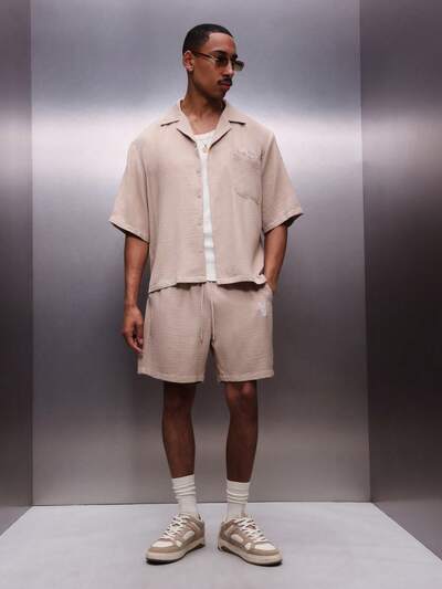 PLAYBOY X SUMWON Linen Feel Button Down Shirt Drawstring Shorts Set