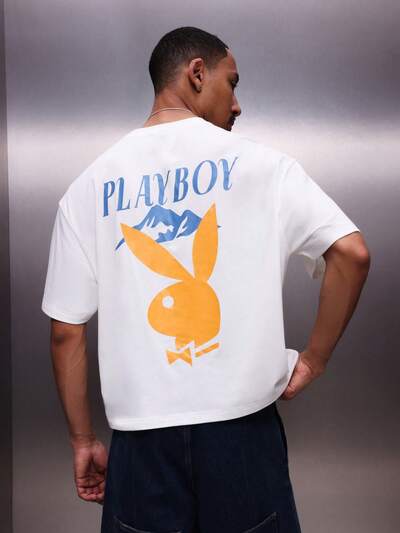 PLAYBOY X SUMWON Graphic Oversized Men White Crew Neck Short Sleeve Cotton T-Shirt With Back Print Design Street Style Casual Tee Summer Spring