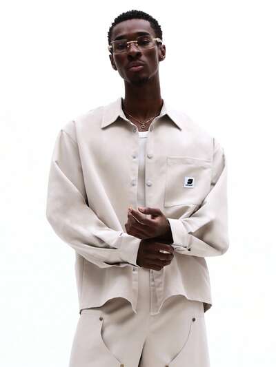 SUMWON Relaxed Fit Button Up Carpenter Shirt With Chest Pocket And Long Sleeves For Casual Daily Wear Fall Winter Styling Plain