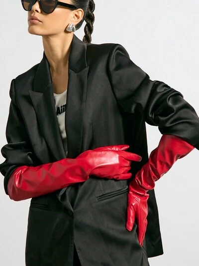 AiiRZ Luxuriöse lange Oper-Länge Kunstleder Handschuhe für Abendmode, Winter Accessoire, Hochzeitsfeier, besondere Anlässe, modische Ellbogenlänge
