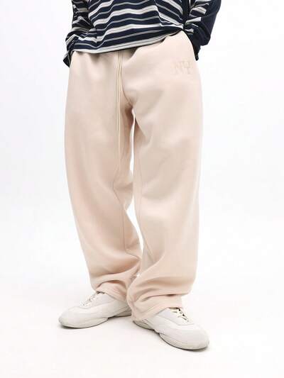 SUMWON Gerade geschnittene Jogginghose mit Kordelzug und gesticktem Schriftlogo für bequemen Alltags-Tragekomfort, unifarben