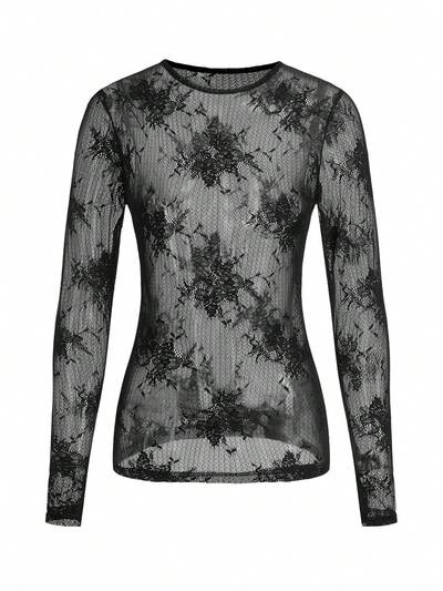 MISSGUIDED Langer Spitzen-Shirtoberteil mit Langarm für Musikfestivals