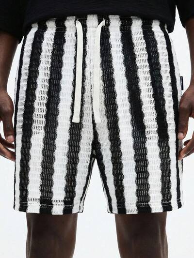 SUMWON Pantalones cortos de baloncesto de ajuste relajado con rayas verticales tejidas, con cordón en la cintura, para uso casual, streetwear y vacaciones de verano