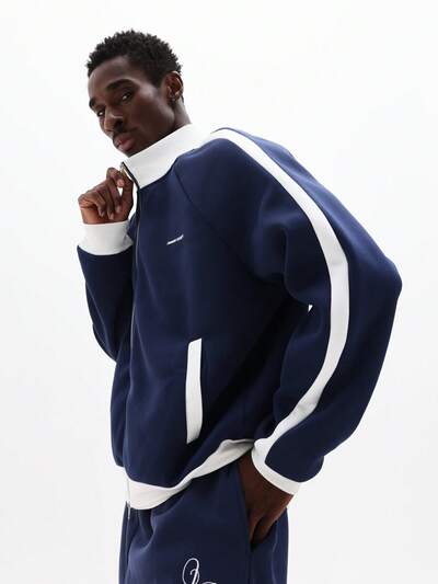 PLAYBOY X SUMWON Chaqueta deportiva con cuello de embudo, ajuste corto, con rayas de contraste y detalles de logo con cremallera