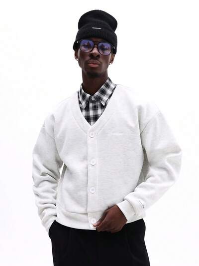 SUMWON Cárdigan con botones al frente con ribete acanalado a tono y ajuste relajado para capas casuales