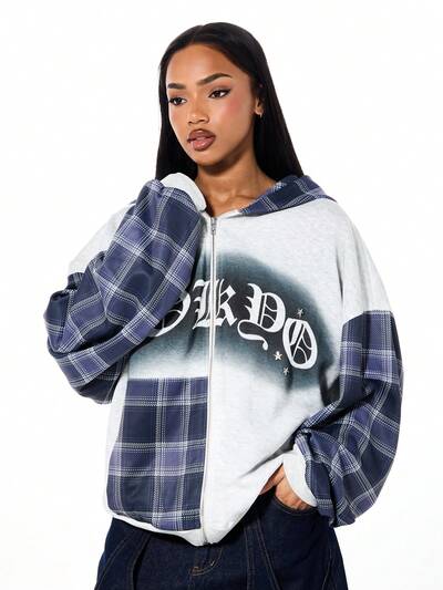 SUMWON Sudadera con capucha con cremallera completa con estampado de lunares y ribete de pespunte en contraste, manga larga, ajustada, sudadera con capucha, cómoda para uso casual diario