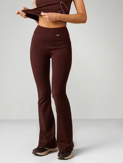 Missguided x Playboy Pantalon de sport évasé à taille haute pour femmes, leggings de gym extensibles, pantalon de sport à jambe évasée