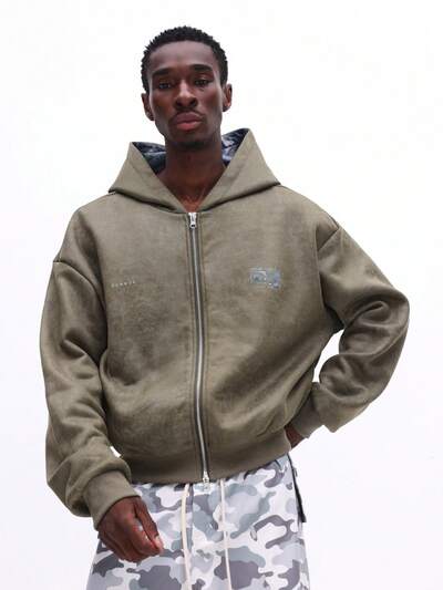 SUMWON męska bluza z kapturem oversize zapinana na zamek z kapturem, dopasowana do sylwetki, luźna, z długim rękawem, modna odzież uliczna, gładka