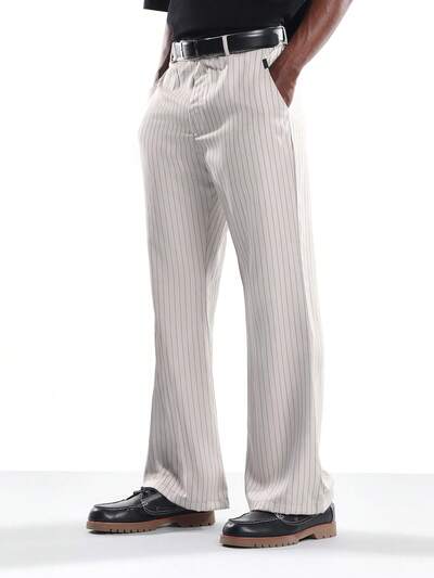 Calça Flare Listrada Retrô SUMWON, Calça Social Profissional Clássica de Escritório Formal para Casamento, Festa e Coleção de Outono e Inverno, Simples